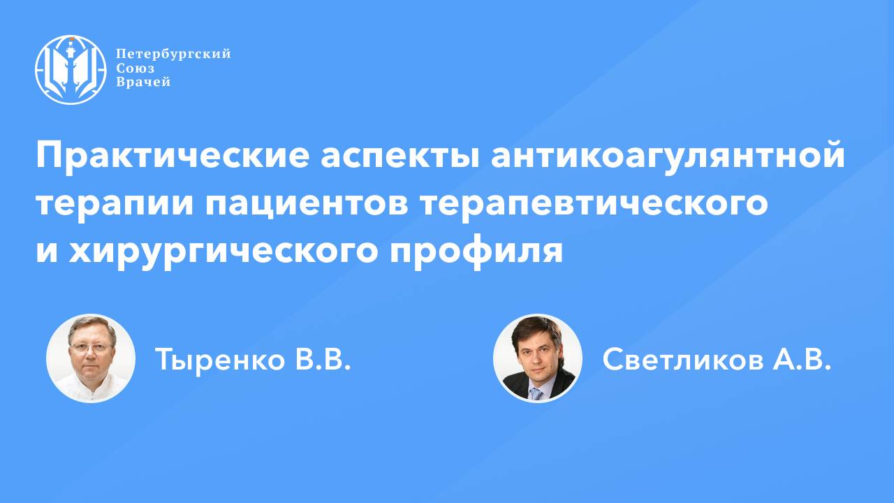 Практические аспекты антикоагулянтной терапии пациентов терапевтического и хирургического профиля Дата проведения: 12.03.2025, 20:00 Страница мероприятия: https://spb.doctor/i/250312/ Программа: 1. Практические аспекты антикоагулянтной терапии пациентов терапевтического и хирургического профиля Светликов Алексей Владимирович, Тыренко Вадим Витальевич 2. Практические аспекты антикоагулянтной терапии при ИБС и после реваскуляризации миокарда. Как можно улучшить результаты хирургического лечения пациентов без проведения повторных вмешательств Тыренко Вадим Витальевич, Светликов Алексей Владимирович 3. Ответы на вопросы О семинаре: В онлайн-семинаре будут освещены вопросы ведения пациентов, получающих антикоагулянтную терапию, допуск к оперативному лечению пациентов особых групп, с онкологией, получающих антиагреганты и антикоагулянты. Будет представлено как правильно определить длительность антикоагулянтной терапии, какие особенности и возможности вторичной профилактики ВТЭО у пациентов хирургического профиля; как можно улучшить результаты хирургического лечения пациентов с ЗПА без проведения повторных вмешательств.