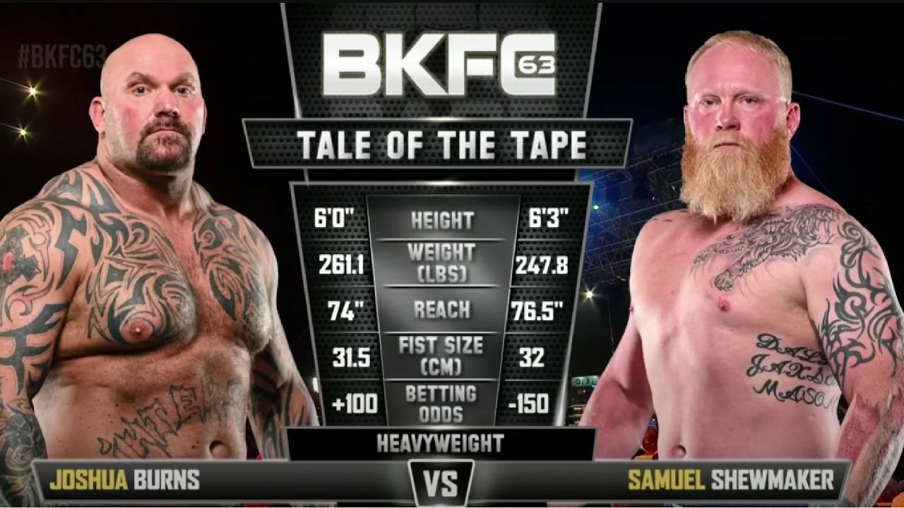 Sam Shewmaker faced Josh Burns from the Sturgis Motorcycle Rally on Saturday, August 3rd, 2024! Watch this entire card now on the BKFC+ App at www.BKFC.com. ✩ TOP VIDEOS ✩ - Best Female Fight of 2021: https://bit.ly/30CGB1C - Best Male Fight of 2022: https://youtu.be/hxUmviU06hI - Best Male Fight of 2023: https://bit.ly/3AeWBYX - Brutal KO Finish!: http://bit.ly/2kEtzvC ✩ HOW TO WATCH ON OUR APP ✩ - DOWNLOAD HERE: https://www.bareknuckle.tv/bktv The BKTV App includes monthly live events, pay-per-view exclusives, unlimited access to our entire catalog of past events, behind-the-scenes access & more! ADDITIONAL APP RESOURCES: ~ APPLE iPHONE: https://apple.co/3bf4cq5 ~ APPLE iPAD: https://apple.co/31BiZYN ~ ANDROID: https://bit.ly/3jl5Jxn ~ COMPUTER: https://watch.bareknuckle.tv/ ~ SMART TV & OTHER PLATFORMS: https://watch.bareknuckle.tv/ ✩ SUBSCRIBE ✩ - Smash that subscribe button here: https://bit.ly/2V5YEFV ✩ FOLLOW US ✩ - FACEBOOK: https://www.facebook.com/bareknucklefc/ - INSTAGRAM: BareKnuckleFC - TWITTER: BareKnuckleFC - WEBSITE: https://www.BKFC.com - LATEST MERCHANDISE: https://www.bareknuckle.tv/shop Wanna see more nonstop action? Make sure to hit that SUBSCRIBE button & leave us a comment below!