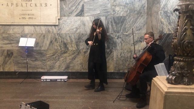 Дуэт скрипки и виолончели в переходе станций метро Арбатская-Библиотека Ленина-Александровский сад