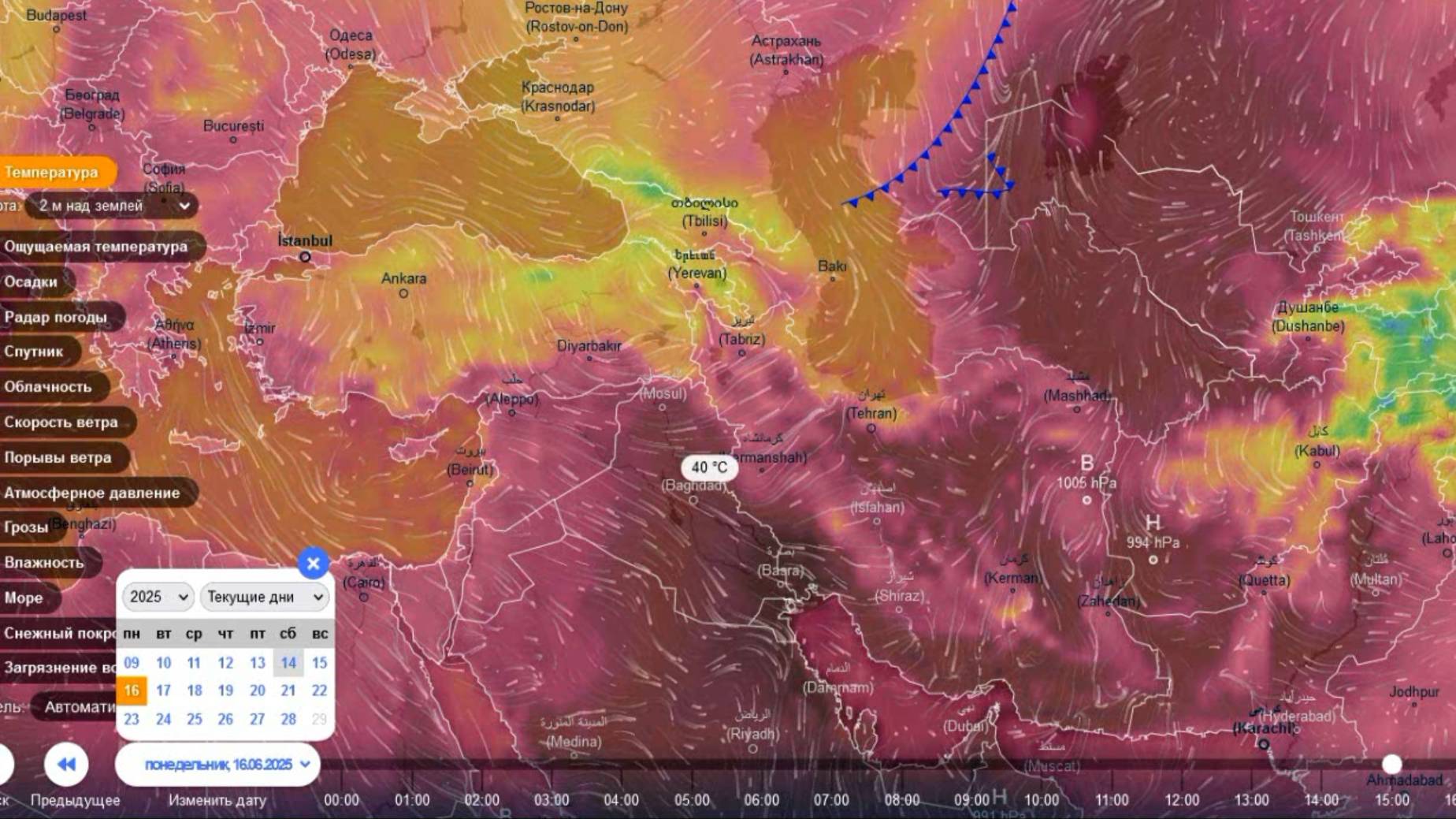 Движение воздушных потоков на Ближнем Востоке с 15 по 18 июня. Прогноз погоды