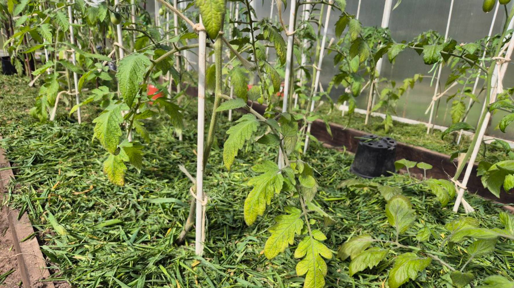 Мульчирование скошенной травой томатов, перцев и баклажанов в теплице