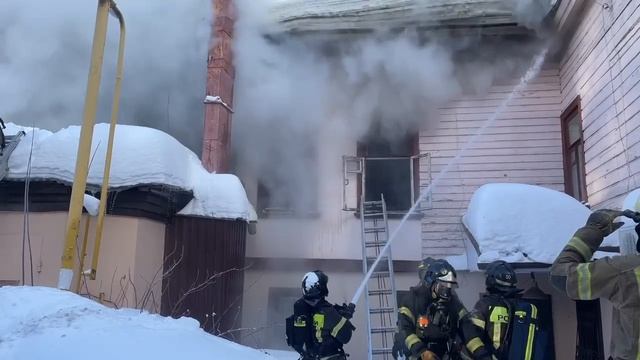 Дом купца Каменева горит на улице Ильинской в Нижнем Новгороде утром 6 февраля