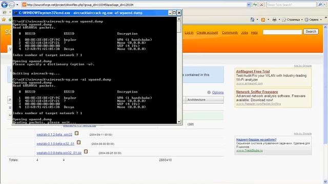Мы ВКонтакте - http://vk.com/XakepRUVideo Это видео демонстрирует работу программ aircrack и weplab с различными типами комбинированных дампов беспроводного трафика. Демонстрируются следующие особенности и ошибки в программах: 1. Weplab может найти в комбинированным дампе только тот ключ, пакетов которого больше. 2. Aircrack может находит в комбинированном дампе тот ключ, пакеты которого расположены в конце (более свежие). 3. Aircrack в интерактивном режиме определяет тип шифрования (WEP/WPA) по последним пакетам. 4. Weplab не взламывает дамп, прямая последовательность пакетов в котором мала для взлома (50.000 для 64-бит и 200.000 для 128-бит).