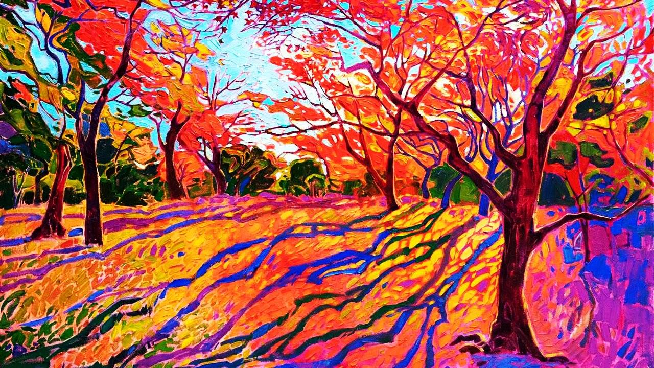 Красочные пейзажи художника Эрин Хансон Невероятно яркие и радостные пейзажи американского художника из Калифорнии Эрин Хансон. Художник Erin Hanson (Эрин Хансон) родилась и живет до настоящего момента в Лос-Анджелесе (США). Рисовать начала в детстве, некоторое время училась в студии росписи. После окончания средней школы Erin Hanson поступила в Калифорнийский университет и получила, в 1997 году, учёную степень в области биоинженерии. После окончания университета работала по специальности, а в свободное время писала пейзажи Юты, Невады, Аризоны и Калифорнии. Эрин Хансон создала уникальный стиль, в котором элементы классического импрессионизма сочетаются с современным экспрессионизмом. Можно сказать, что художник трансформирует пейзажи в абстрактные мозаики цвета Музыка: Acoustic Alchemy - инструментальная музыка