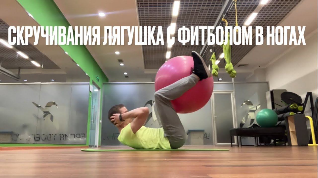 Скручивания лягушка с фитболом в ногах (BALL FROG CRUNCH)