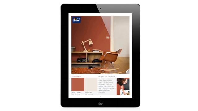 Mobilna Karta Kolorów Dulux: Inspirujące zdjęcia wnętrz, pełne ciekawych aranżacji. Zgodne z najnowszymi trendami zestawienia kolorystyczne przygotowane przez zespół ekspertów Dulux we współpracy z architektami wnętrz w wersji na IPada. Dostępna także na inne urządzenia mobilne.