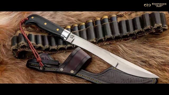 Это мачете мы рекомендуем брать в багажник автомобиля вместо топора при выездах на природу. Внушительный нож с огромным клинком переменной ширины и толщиной обуха 6 мм. Клинок имеет разные углы спусков обратной линзовидной формы, что позволяет резать ближней половиной клинка, дальней же рубить подобно мачете. На обухе клинка от острия до середины клинка выведено фальшлезвие, что значительно облегчает вес ножа. Рукоять большая, удобной для рубки формы, имеет отверстие на навершии для темляка. Монтаж рукояти накладной, неразборный. Этот нож мы рекомендуем брать в багажник автомобиля вместо топора при выездах на природу, ему нет равных при необходимости нарубить веток под колеса застрявшей машины и при обустройстве стоянки.