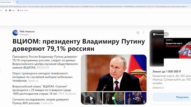 ВЦИОМ_ президенту Владимиру Путину доверяют 79,1% россиян_ Новости