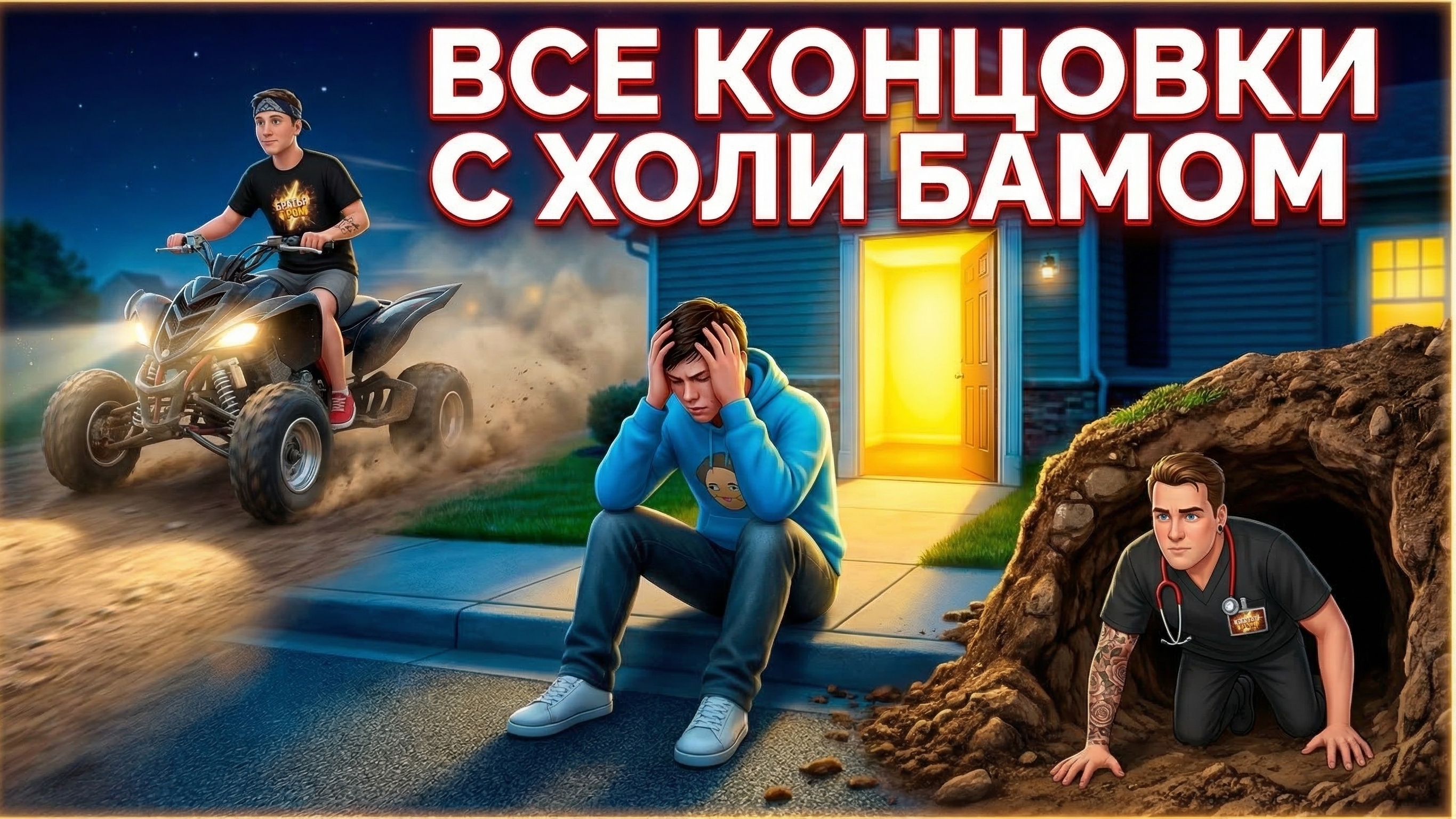 Это было непросто, но я собрал все возможные финалы в одном видео! 🔥 Какая концовка, по-вашему, самая жуткая или неожиданная? Пишите в комментариях! И спасибо каждому за лайк и подписку на канал "БРАТЬЯ ГРОМ" — вы лучшие! 👇 «Побег от Блогера» — это атмосферная и напряжённая игра в жанре хоррор на выживание с элементами приключенческого экшена, стелса и квестов-головоломок. По сюжету главный герой пробирается в дом популярного блогера, чтобы раскрыть его секреты и выяснить правду о том, что скрывается за популярным образом. Однако вскоре выясняется, что это место — настоящая ловушка. Двери захлопываются, и теперь вашей единственной целью становится побег из дома, наполненного опасными тайнами и странным поведением его хозяина. Приятного просмотра друзья. #БратьяГром #ПобегОтБлогера #ВсеКонцовки #Хоррор #Видеоигры #Прохождение #ХолиБам #Летсплей Поддержать - http://www.donationalerts.com/c/oleg_chirikov_92 По всем вопросам VK - https://vk.com/o.thor Паблик ВКонтакте - https://vk.com/club226899857?from=groups ЮТУБ - https://www.youtube.com/channel/UCG48udXpv1wUzSuHsIshGMA Twitch - https://www.twitch.tv/thethunderbrothers2 Дзен - https://dzen.ru/id/6682f6ffbabc1246bdc3153c?share_to=link