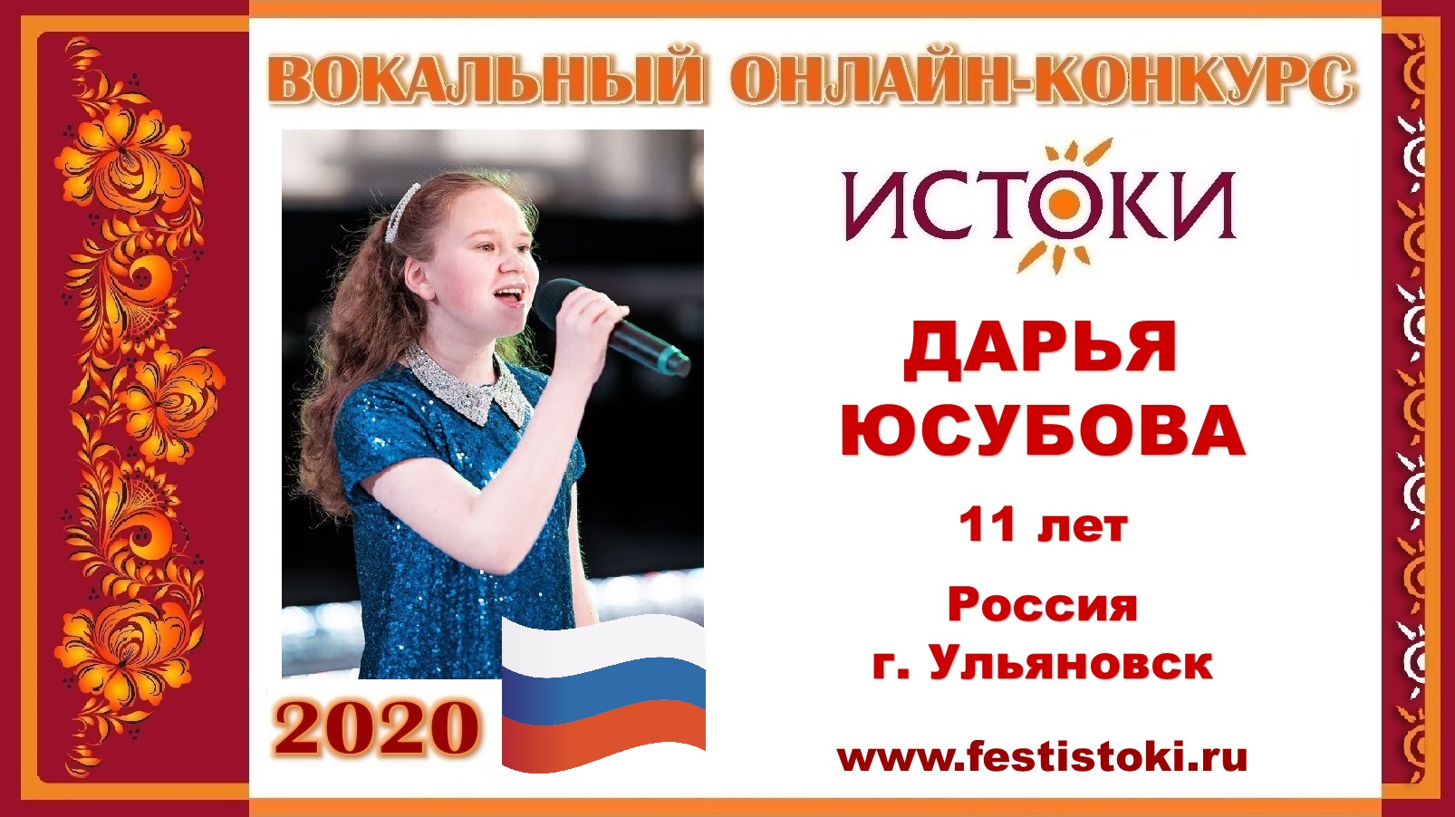 Участница Вокального онлайн-конкурса "Истоки"-2020. Песня "Спасибо жизнь". Авторы: слова Р.Рождественского, музыка М.Дунаевского. Сайт: www.festistoki.ru / www.festistoki.com E-mail: festistoki@mail.ru