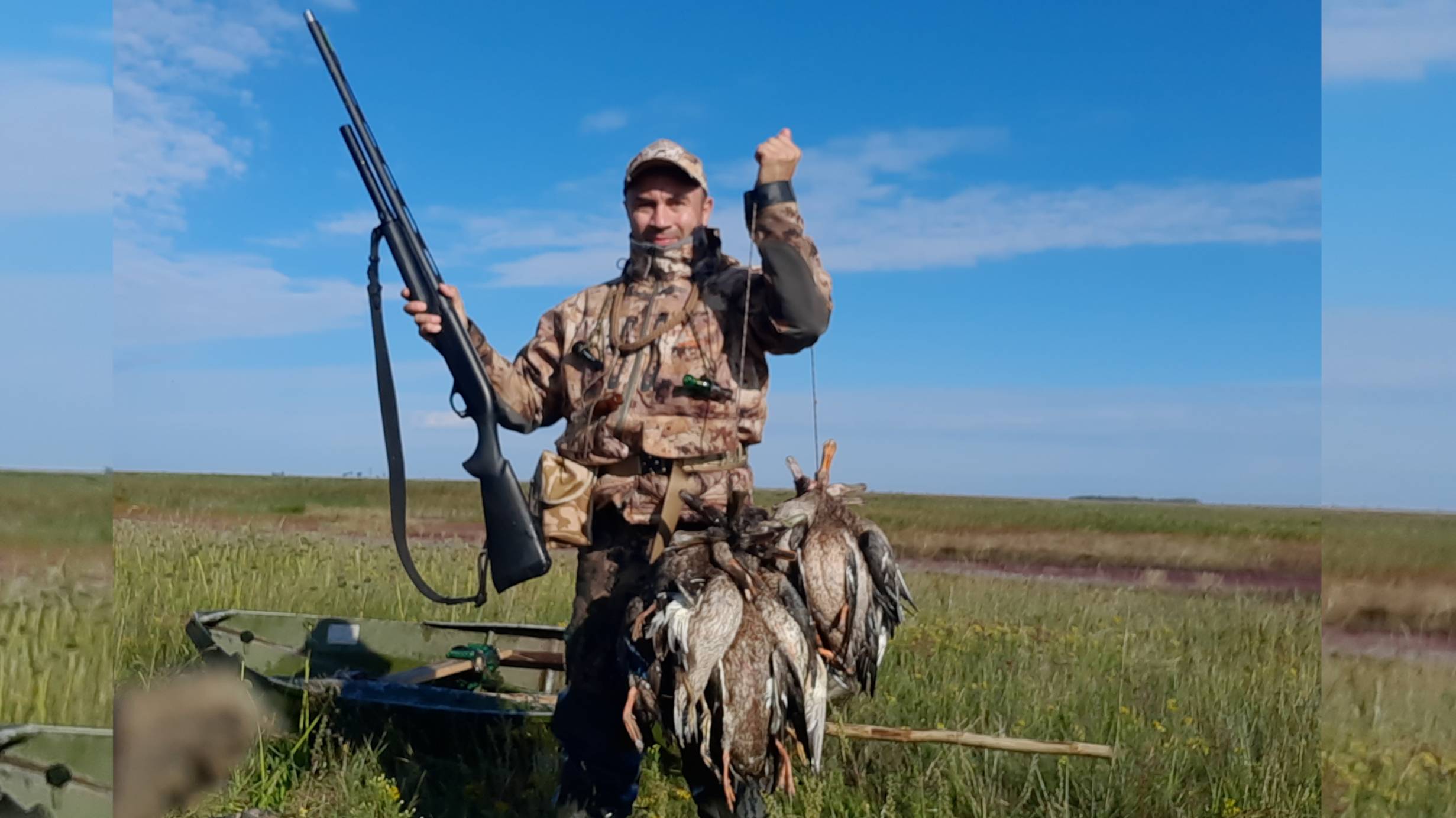 Утка прет в тумане!!! Не успеваю заряжать!!! Набил пол-лодки!!!