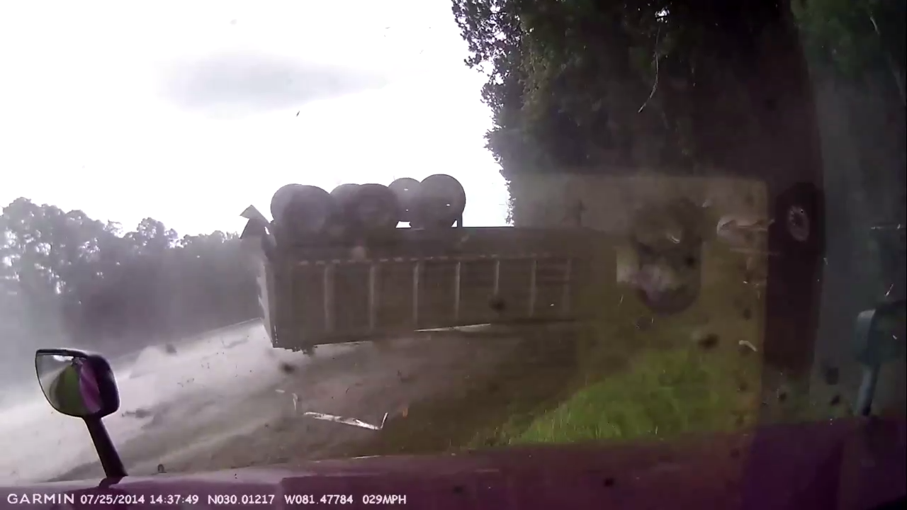 Водитель фуры, перевозившей около 30 тонн песка, уснул за рулем и влетел в своего коллегу. В результате второй водитель получил травмы позвоночника в области шеи, а уснувшего арестовала полиция. #фура#сон#песок