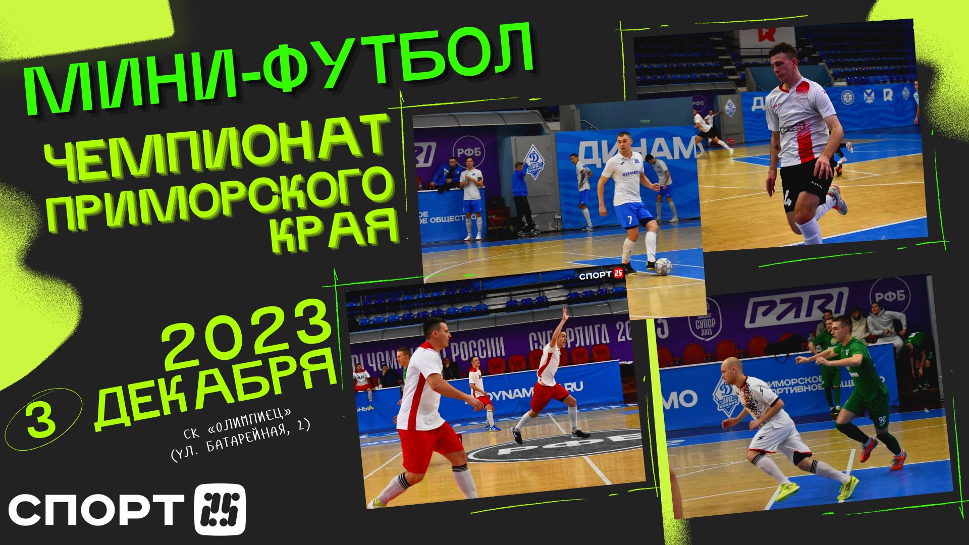 3 декабря 2023. В спорткомплексе «Олимпиец» состоялся первый тур чемпионата Приморья по мини-футболу. Результаты: «Галант» 1:6 (0:4) «Амикс» «Регион 25» 3:4 (2:3) «ММК» «Локомотив» 3:3 (1:1) с.п. 2:3 «Старт-Альтерна» «Анри» 4:3 (3:1) «Лаб-индастрис» Подробнее: https://sport25.pro/post/amiks-startoval-v-chempionate-primorskogo-kraya-po-mini-futbolu-razgromom-nad-galantom Подписывайтесь и жмите на колокольчик, чтобы не пропустить новые видео и лучшие моменты в Приморском спорте! Расписание следующих матчей: 9 декабря, суббота (г. Владивосток, СК «Олимпиец») 14:00 «Амикс» – «Лаб-индастрис» 15:00 «Старт-Альтерна» – ?«Анри» 16:00 «ММК» – ?«Локомотив» 17:00 «Галант» – «Регион 25» Больше спорта в нашем телеграм канале! Подписывайся по ссылке: https://t.me/sport25_pro Официальный сайт: https://sport25.pro VK: https://vk.com/sport25pro OK: https://ok.ru/sport25pro YouTube: https://www.youtube.com/channel/UCFA4UakBV6YOqblrlQLXtfA Телеграм: https://t.me/sport25_pro #минифутбол