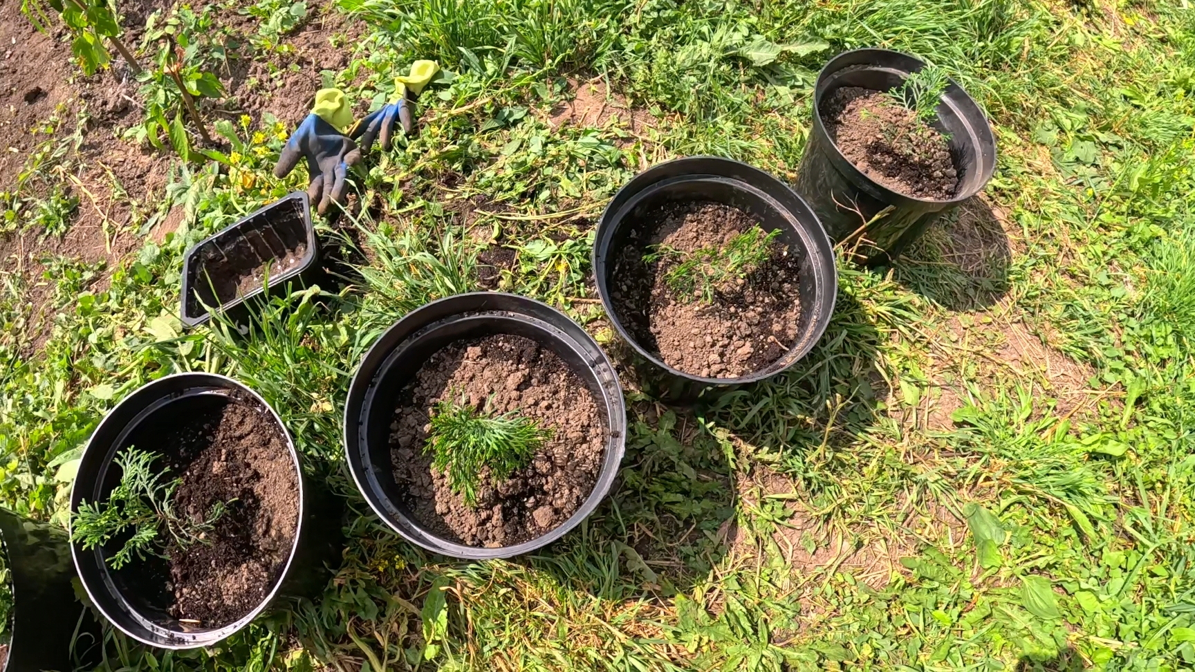 Сажаю укорененные туи в большую тару