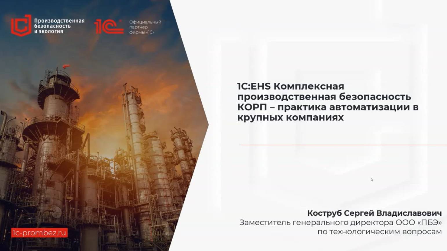 Компании «1С» и «Промышленная Безопасность и Экология» (ПБЭ) представляют экспертный вебинар, посвященный современным подходам к автоматизации систем управления промышленной и экологической безопасностью на предприятиях. Ключевые аспекты рассмотренной тематики: Системный подход к цифровизации EHS-процессов Корпоративные решения для комплексного управления производственной безопасностью В рамках вебинара были детально рассмотрены: Функциональные возможности системы «1С:EHS» для управления: Производственной безопасностью Экологическим контролем Пожарной безопасностью Охраной труда Практические аспекты реализации: Электронного документооборота наряд-допусков Систем видеомониторинга с элементами искусственного интеллекта Процедур цифровой подписи документов Вопросы интеграции: Масштабирование решения для холдинговых структур Совместимость с существующей ИТ-инфраструктурой предприятий Вебинар будет полезен руководителям и специалистам, заинтересованным в: Повышении эффективности систем управления безопасностью Снижении операционных рисков Оптимизации затрат на обеспечение соответствия нормативным требованиям По вопросам внедрения систем линейки "1С:Производственная безопасность" обращайтесь к официальному партнеру-разработчику "1С" - компании "ПБЭ": info@1c-prombez.ru +7 495 975 96 51