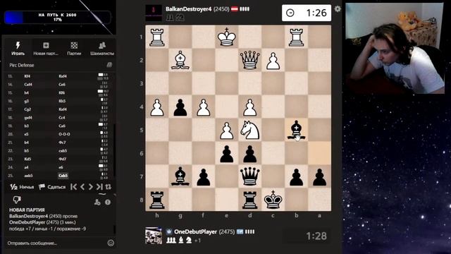 Друзья, всем привет. Партия со стрима, представляю вашему вниманию. Шахматы. Блиц 3+0 на chess.com. Если интересно, - подписывайтесь на канал, ставьте лайки, оставляйте комментарии. Поддержка через: DonationAlerts: https://www.donationalerts.com/r/onedebutplayer Бусти: https://boosty.to/onedebutplayer/donate Donatepay: https://new.donatepay.ru/@1272445 Или на карту в телеграм-канале: https://t.me/onedebutplayer/3