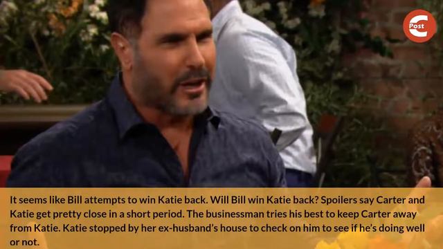 Bold and the Beautiful spoilers say Katie Logan and Carter Walton are getting closer. Katie will be worried about his ex as she sees the writing on the wall for Carter. Carter sees Kate seems busy. Will he lose Katie forever? Billy seems to pull his ex away from Carter.