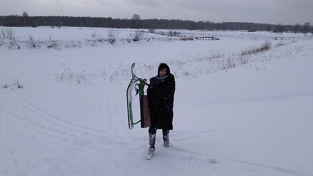 Прикольно прокатились на снегокате со снежной горы