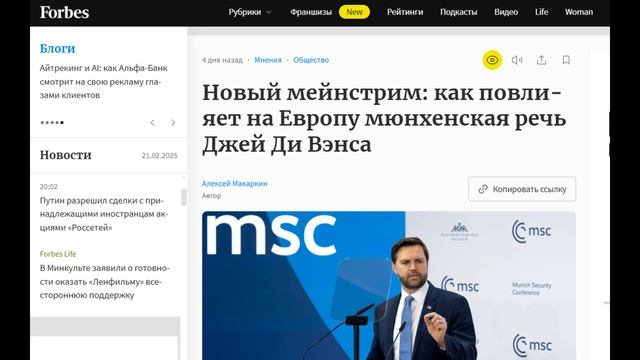 Вэнс прибыл в Мюнхен не просто как вице-президент, а как один из лидеров самой нежеланной для европейской элиты администрации США: если бы Начало тут https://rutube.ru/video/98a6fb25df0047a40ed517654d3332df/ Добра и Мира Вам и Вашему дому!