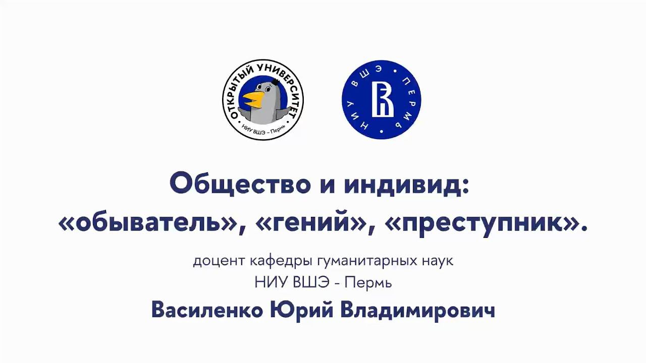 Открытая лекция «Общество и индивид «обыватель», «гений», «преступник»