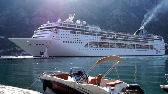 Лайнер уходит в круиз, Которская бухта, Черногория. The liner goes on a cruise, Kotor, Montenegro