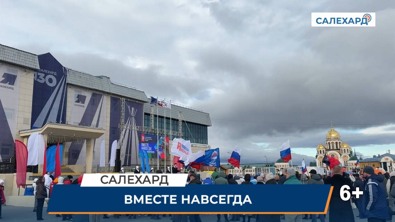 День воссоединения В День воссоединения ДНР, ЛНР, Запорожской и Херсонской областей с Россией на главной площади Салехарда прошел праздничный концерт. Торжественное мероприятие собрало около 300 зрителей. Четырем молодым горожанам вручены паспорта граждан РФ.