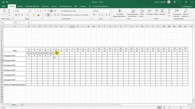 Создание графика работы в Excel / Урок эксель для начинающих!