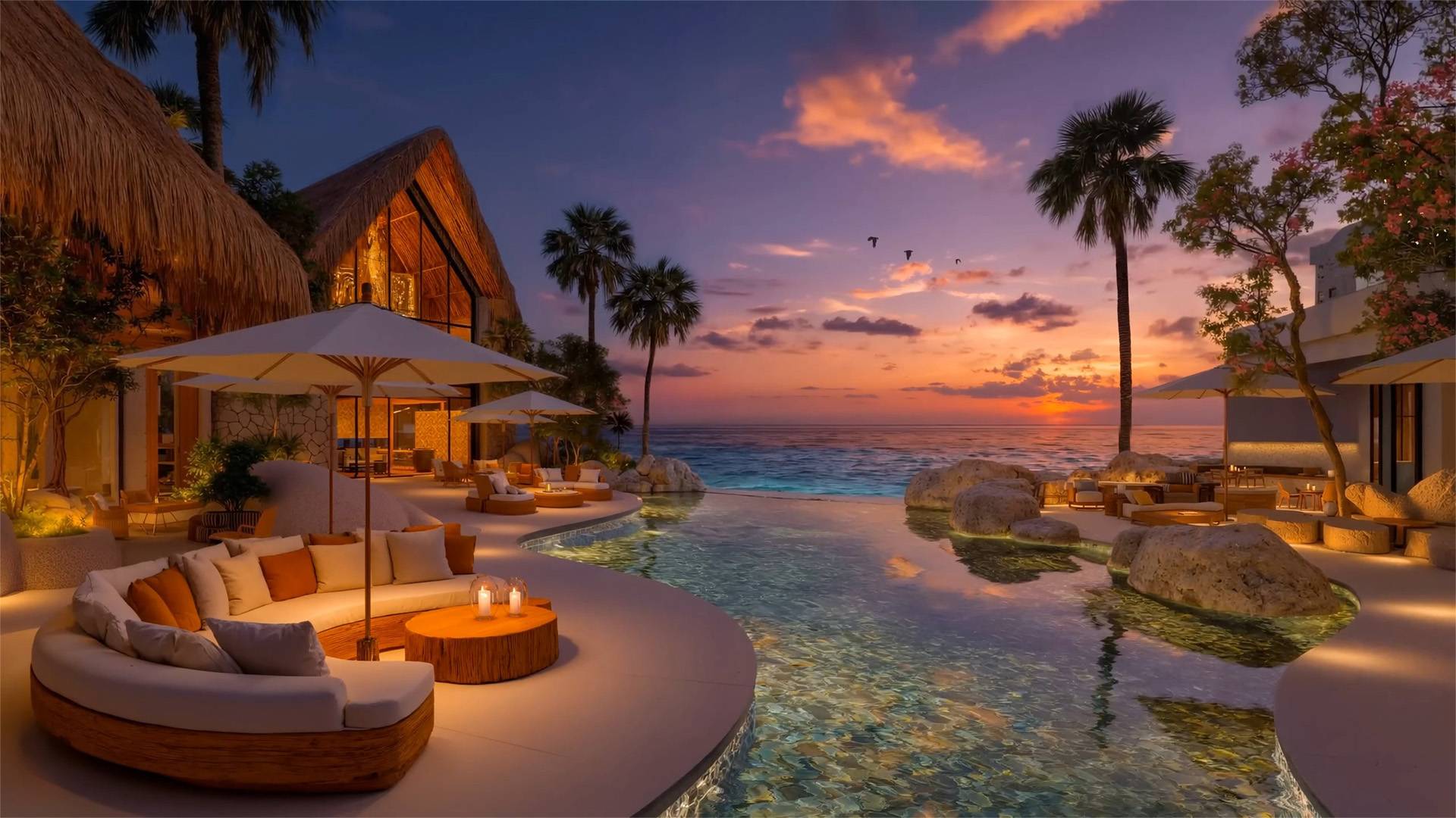 Расслабьтесь и погрузитесь в магию тёплого тропического вечера. Закат окрашивает небо в золотые и сиреневые оттенки, а лёгкий джаз наполняет воздух у бассейна. Это видео — глоток отдыха, уюта и красоты. 🎶 В этом видео: ▪ Пальмы и мерцание свечей ▪ Вечерняя нега на берегу ▪ Спокойный джаз и океанский прибой #джаз #тропики #закат #атмосфера #релакс #вечер #океан