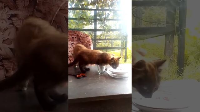 Красивая пушистая МАМА-КОШКА и милые игривые КОТЯТА пришли в гости. ДАЧНЫЕ КОШКИ играют и бесятся.