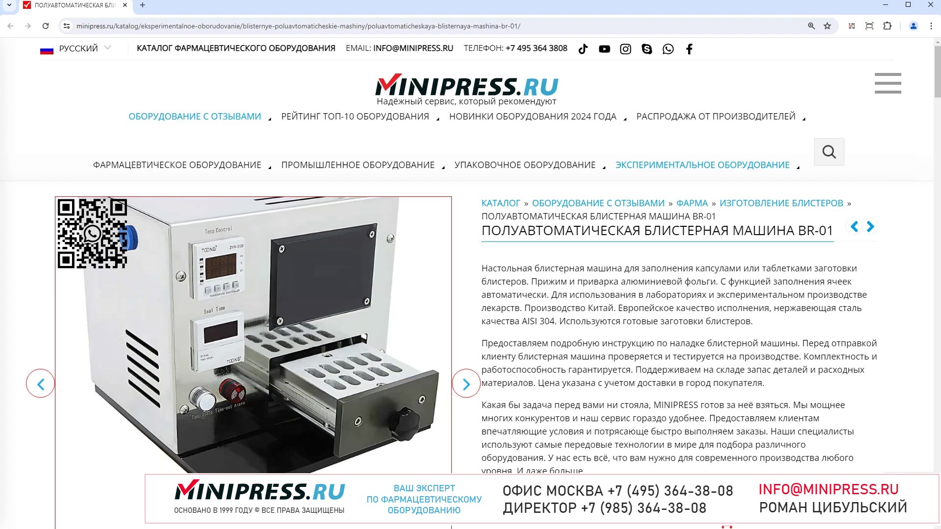 Специалисты компании MINIPRESS.RU подберут для вас ОБОРУДОВАНИЕ ДЛЯ ПРОИЗВОДСТВА КРЕМОВ И МАЗЕЙ. В нашем каталоге описание моделей Гомогенизаторов, Дозаторов Жидкостей и вязких материалов, оборудования для точного дозирования Кремов и Мазей. Различные нержавеющие Емкости из Китая, оборудование для Наполнения и запайки Туб, автоматические и настольные Тубонаполняющие Машины. Компания Романа Цибульского MINIPRESS.RU занимается поставкой большого ассортимента фармацевтического оборудования из Китая, Кореи, Индии, Европы и других стран. Мы выполняем работы по поиску, подбору, закупке, доставке, и таможенной очистке оборудования с доставкой в любой город России и стран СНГ. Основатель и ведущий специалист компании - Роман Цибульский. Компания MINIPRESS.RU (зарегистрированный товарный знак) основана в 2000 году. Онлайн каталог оборудования MINIPRESS.RU ежедневно посещают несколько тысяч человек. Мы развиваем крупные каналы в социальных сетях, посвященные тематике фармацевтического оборудования. Вы можете посмотреть видео ролики об оборудовании, которым мы занимаемся. Фактически у нас самый большой в России многоязычный каталог фармацевтического оборудования с фотографиями, описаниями, и что более важно с ценами и видео демонстрацией оборудования в работе. Подбор оборудования и консультации ведет сам владелец компании - Роман Цибульский. Компания имеет огромный опыт в работе с различным оборудованием, технологиями. Помогаем клиентам выбрать модель фармацевтического оборудования, которое сможет решить поставленную задачу. Наши специалисты помогают рекомендациями в решении проблем по эксплуатации оборудования. Наша компания имеет офис в г.Шанхай и несколько менеджеров, которые помогают в работе с китайскими поставщиками. Мы долго сотрудничаем и дружим с этими специалистами. Китайские поставщики ценят нас как постоянных партнеров. Роман Цибульский Директор компании Минипресс Поставка фармацевтического оборудования в Россию Пишите: info@minipress.ru Gmail: boss.minipress@gmail.com Офис в Москве +7(495)364-38-08 Мобильный +7(985)364-38-08 (WhatsApp) Каталог оборудования https://www.Minipress.ru/katalog/ МИНИПРЕСС.РУ В СОЦИАЛЬНЫХ СЕТЯХ FB https://facebook.com/roman.tsibulsky YOUTUBE https://www.youtube.com/@farmacevticheskoe_oborudovanie INSTAGRAM https://www.instagram.com/farmacevticheskoe_oborudovanie/ #технологии #укупорка #производство #маркировка #ингредиент #бизнес #таблетки #стик #сублимационная #сито