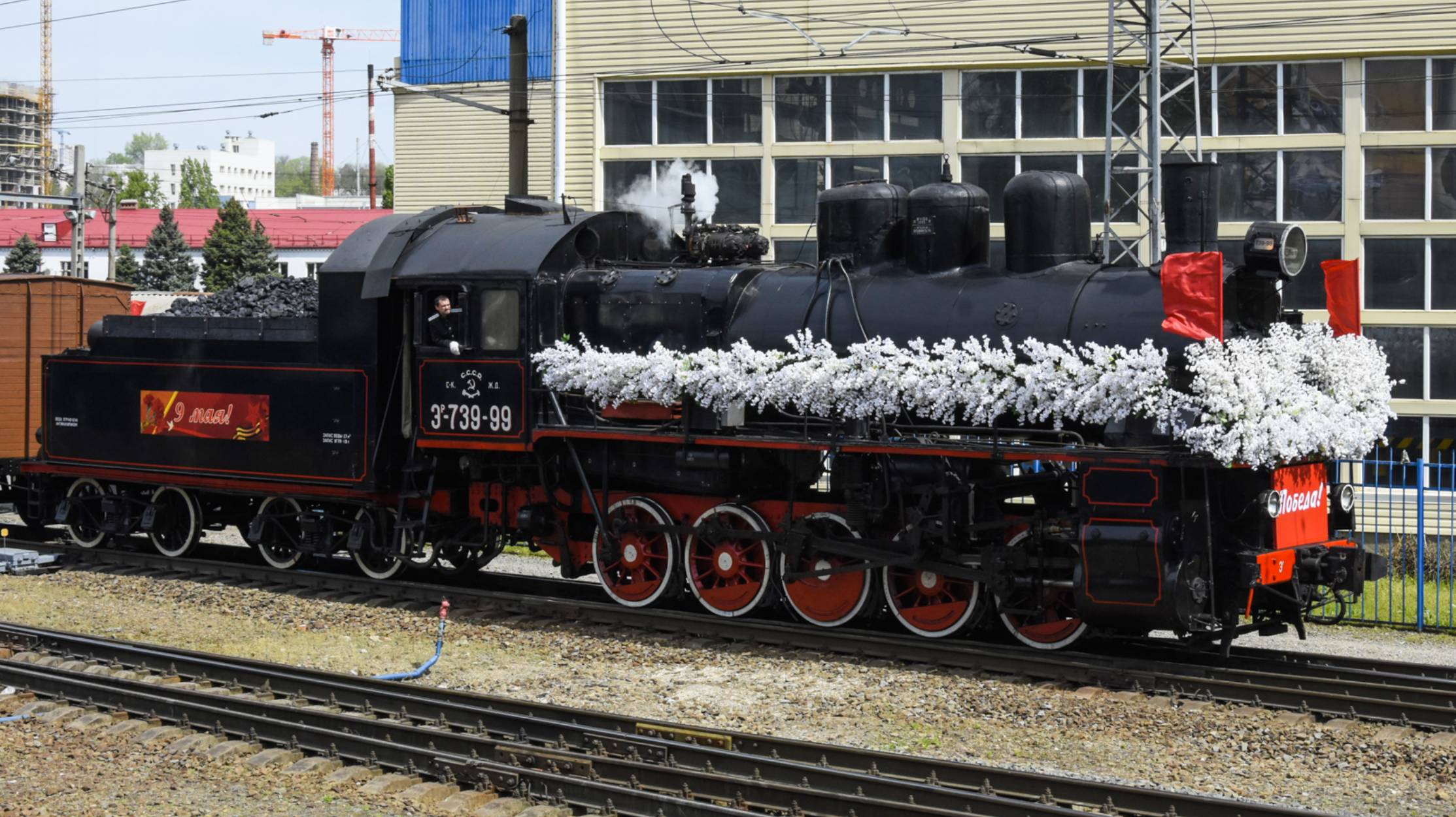 Поезд Победы с паровозом Эр739-99 оглашает рёвом гудка окрестности Ростовского вокзала, 6 мая 2021 года. Все видео созданы мной в рамках проекта Путешествия и Транспорт