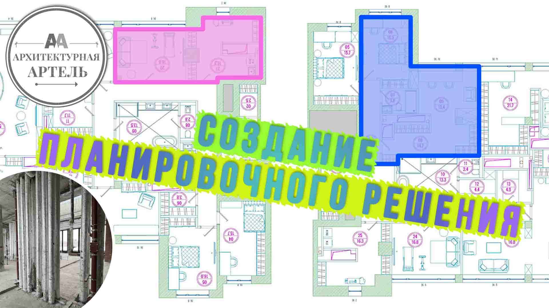 Разработка планировочного решения пентхауса, 390 метров. Пошаговая работа, 11 вариантов от DVAA.PRO