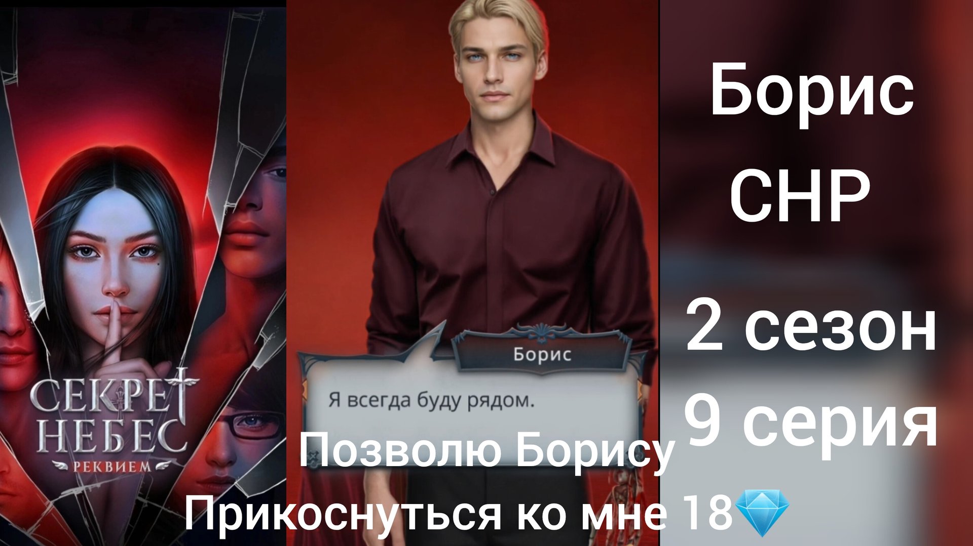 #сценасборисом #борисснр #поцелуйсборисом #борис #снр #секретнебесреквием #визуальнаяновелла сцена с Борисом из 9 серии 2 сезона одна из самых полных библиотек со сценами из виз новел тел кан: ligaromantikov Секрет небес - реквием