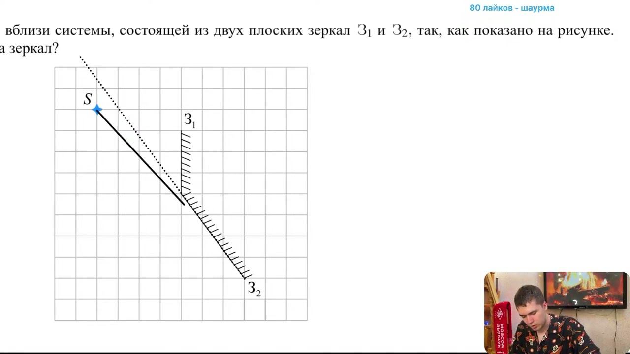 Точечный источник S расположен вблизи системы, состоящей из двух плоских зеркал З1 и З2 - №28226