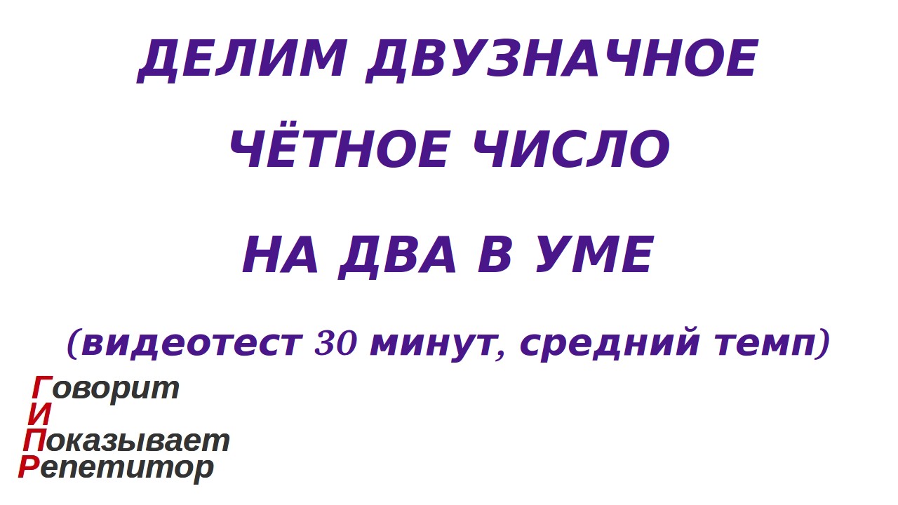ГИПР - Делим двузначное чётное число на 2 в уме, видеотест 30 минут, средний темп