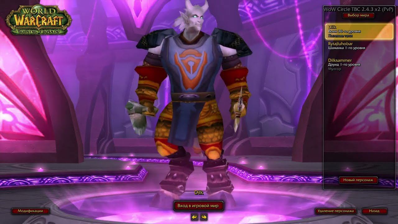 WowCircle открытие World of Warcraft The Burning Crusade х2 играем за воина дренея с одноручками
