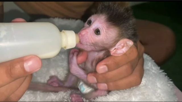 Утро новорожденной обезьянки в семье усыновителя начинается с кормления