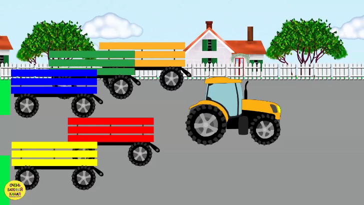 Развивающий мультфильм про тракторы. Ребята помогут тракторам найти нужный прицеп. В мультфильме используются цвета: красный, синий, зеленый, желтый и оранжевый. Яркий красочный мультфильм понравится детям! Развивающие мультики - помогут получить необходимые знания малышам! Лучшее обучение - это обучение в игровой форме! Поэтому развивающие мультики для маленьких зрителей нашего канала "Очень Важный Канал Развивающие мультики" это огромная помощь родителям в процессе обучения своих детей. Чтобы подкрепить образовательный процесс, вы так же можете воспользоваться нашими ПОДСКАЗКАМИ ПО ОБУЧЕНИЮ и развивающими картинками в Вконтакте: http://vk.com/kidsplays , а также в других социальных сетях. Так же в социальной сети Instagram мы публикует РАЗВИВАЮЩИЕ КАРТИНКИ: https://www.instagram.com/womsec2008/ Приятного просмотра и новых знаний! #оченьважныйканал, #оченьважныймалыш, #развивающиемультики, #развивающиекартинки, #занятиясдетьми, #занятиядлядетей, #мультикидлямаленьких, #мультикионлайн, #учимцвета