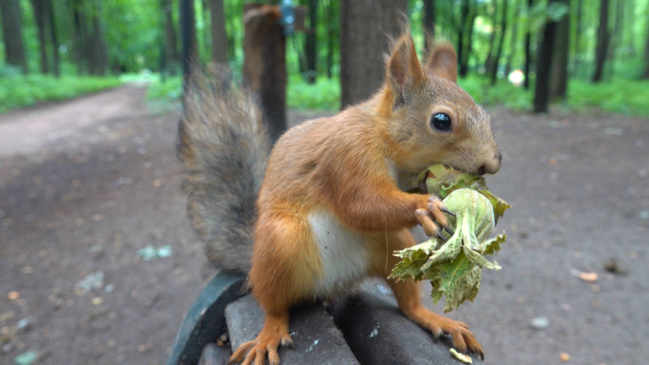 Белки, голуби, ворона. Зарисовка