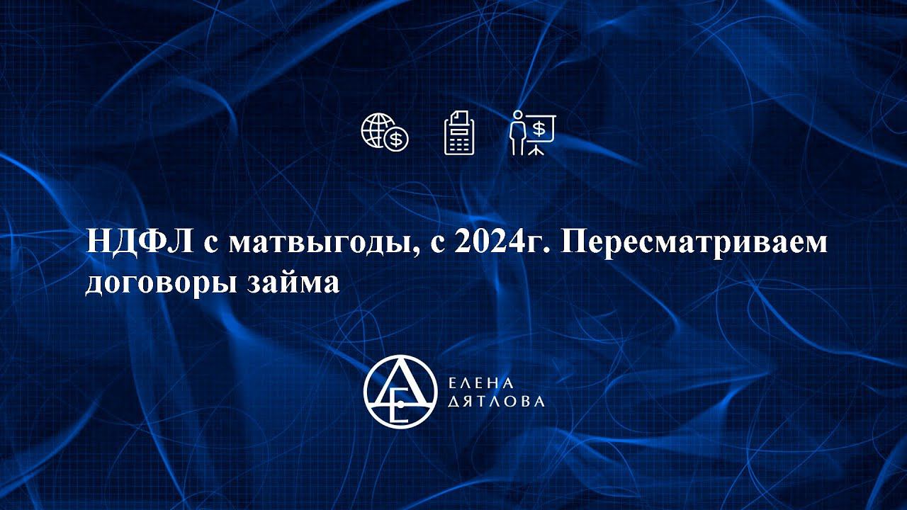 Добрый день. Напомню, что на период 2021-2023г. все виды материальной выгоды освобождались от начисления и уплаты НДФЛ. Если вносили временные изменения в договоры материальной выгоды, не забудьте подписать допсоглашения до 01.01.2024г. Подробней в ролике Е.М. Дятловой. Е.М. Дятлова - налоговый консультант, эксперт-практик в решении самых сложных вопросов по бухгалтерскому учету и налогообложению с опытом работы 26 лет. Более 3000 клиентов по всей России. Расписание актуальных семинаров и вебинаров можно посмотреть на сайте: https://buchguru.vip .