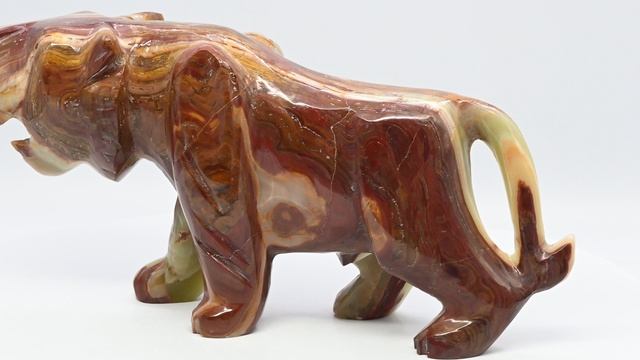 •Материал: оникс. •Техника исполнения: ручная резьба по камню. •Вес: 3780г. Цена: 10 976 руб. https://radugakamnya.ru/catalog/suveniry_iz_kamnya/suveniry_iz_oniksa/figurki_iz_oniksa/tigr_iz_oniksa_12_310_77_155mm-611455/