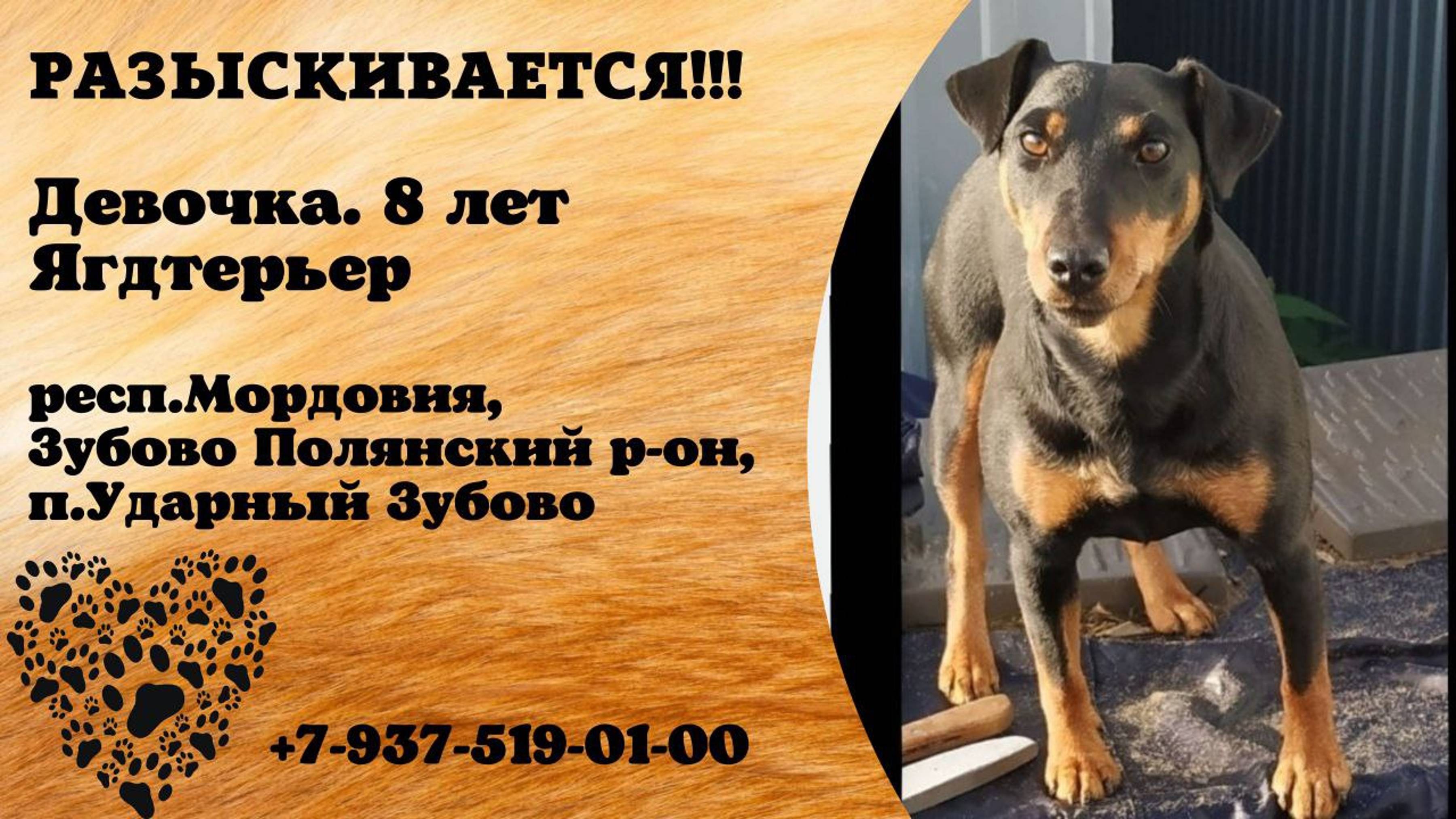 Пропала собака! Девочка. 8 лет.Ягдтерьер. респ. Мордовия, Зубово Полянский р-он, п. Ударный Зубово