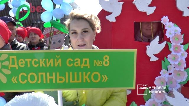 Первомайская демонстрация трудящихся на Октябрьской площади в Мензелинске.