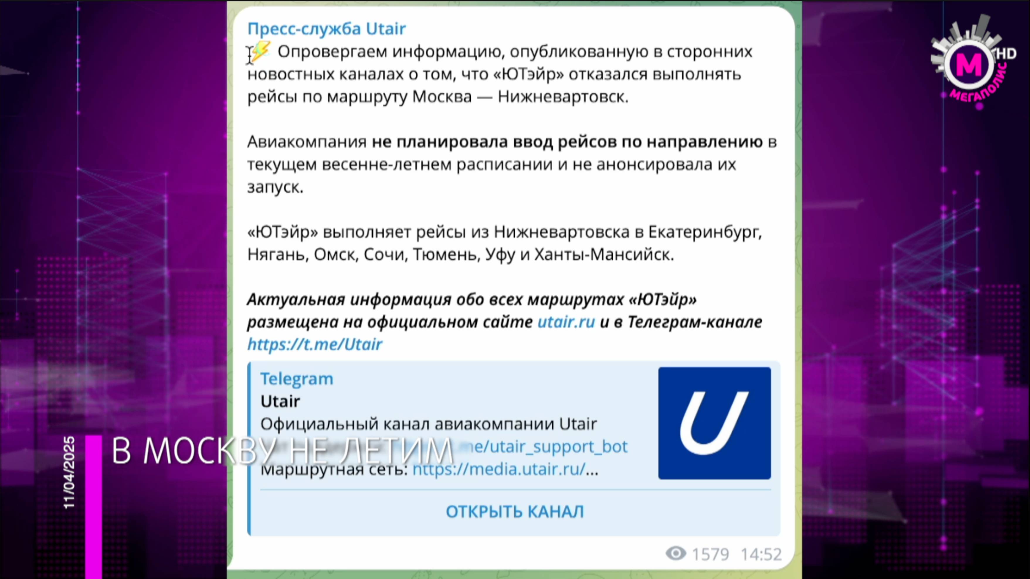 В ЮТэир рассказали о рейсе Нижневартовск-Москва - Югра