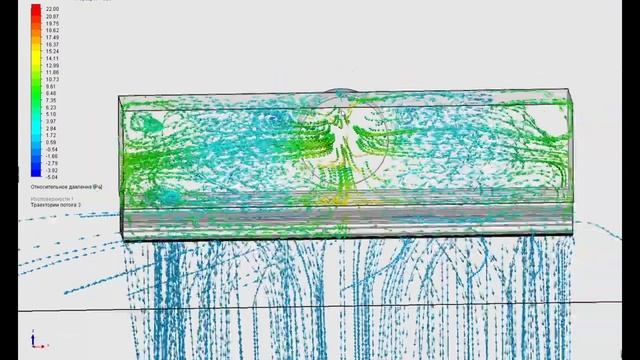 Визуализация потока воздуха Airslot-20-Т2-3-1000, угол наклона лопаток 0°(ПОЛНЫЙ АНАЛОГ Trox ALSP)
