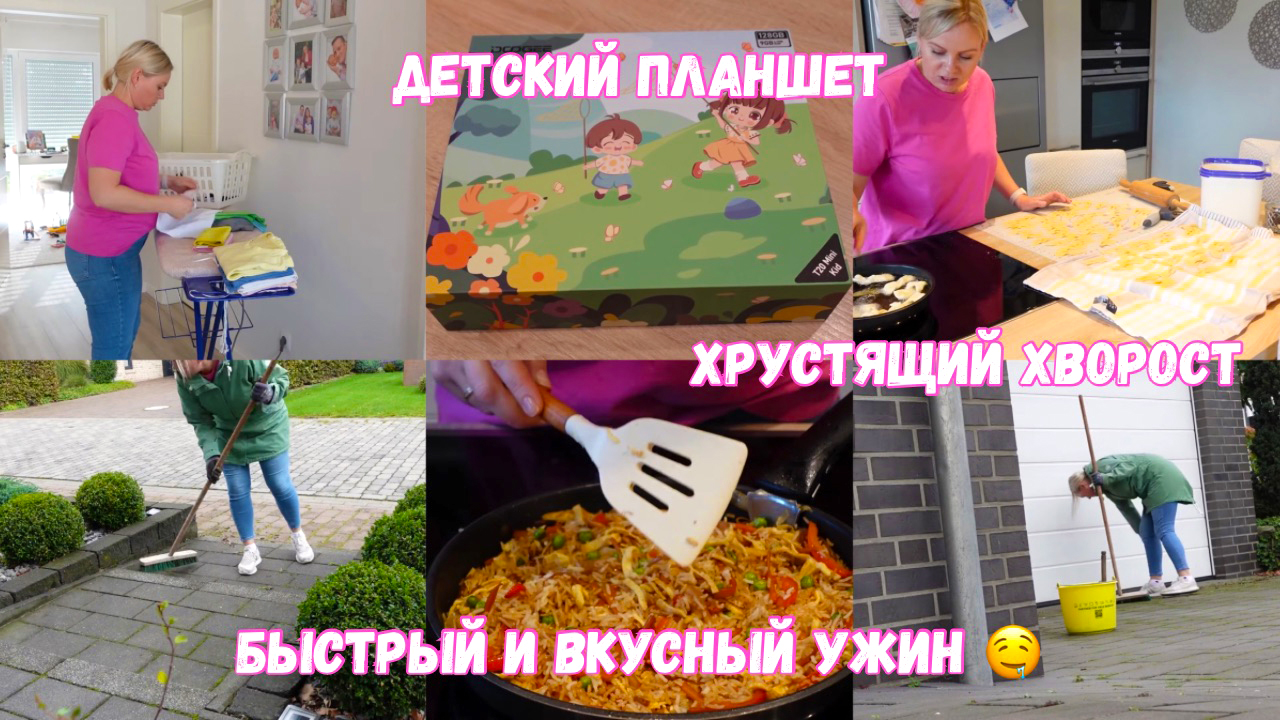 Здравствуйте дорогие друзья ❤ Желаю вам хорошего дня и приятного просмотра ? ?планшет: Link: https://amzn.to/3twNZtq * Промокод: DGT20MINIKID (действует до 31.10.23) Хворост: -1 яйцо -1 ст.л. воды -1 ст.л. водки -щепотка соли -140-160 г муки -сахарная пудра _________________________________________ полезные ссылки: Stylink Stylist: https://www.stylist.social/Ekaterinashome * ноутбук для работы: https://amzn.to/3saUH56 * наручные часы: https://amzn.to/3sXlvVP * робот-пылесос: https://amzn.to/3h6xgDI * обои в комнате Юлии: https://amzn.to/30GOSBo * люстра в комнате Юлии: https://www.stylink.it/7wdkmFv7RM * ковер в коридоре: https://amzn.to/3Do7X9S * ковер в зале: https://amzn.to/3UEFJ2L * цветочный горшок в коридоре: https://amzn.to/2YUUA1V * маленькие столики: https://amzn.to/3lv8TlP * шторы на кухне (4 квадрата): https://amzn.to/3nljvoH * стулья в гостиной: https://www.hoeffner.de/artikel/13305499 чехлы на стулья: https://s.click.aliexpress.com/e/_Afqdlw * чехлы на диван: https://s.click.aliexpress.com/e/_9HUQtY * _________________________________________ Инстаграм: https://instagram.com/ekaterinashome _________________________________________ ? сотрудничество: katjasvlog@aol.com _________________________________________ Music by - Epidemic Sounds https://bit.ly/2YDOZfN * ________________________________________ Тайм-коды: 00:00 вступление 00:21 утренняя рутина 01:58 планы на день 02:42 планшет от компании DOOGEE 03:45 убираюсь перед домом 07:14 хотим обновить грядку перед домом 08:21 тесто на хворост 09:27 жарю хворост 10:49 мариную куриное филе 11:49 цукини в духовке 12:26 лайфхак, как высушить Thermomix 13:18 сахарная пудра из Thermomix 13:47 глажка 15:37 лиза убирается у свинок 16:51 лиза мерит лужы 17:47 в парке 19:12 Азиатский рис 19:41 яичный блинчик 20:41 обжариваю овоши 22:12 соединяю ингредиенты 23:30 за кадром 24:10 завершения _________________________________________ Provisions-Links / Affiliate-Links Die mit Sternchen (*) gekennzeichneten Links sind Provisions-Links, auch Affiliate-Links genannt. Wenn Sie auf einen solchen Link klicken und auf der Zielseite etwas kaufen, bekomme ich vom betreffenden Anbieter oder Online-Shop eine Vermittlerprovision. Es entstehen für Sie keine Nachteile beim Kauf oder Preis. _________________________________________ #КатиныбуднивГермании #нашажизньвгермании #влог #влогиизгермании #рецептынакаждыйдень