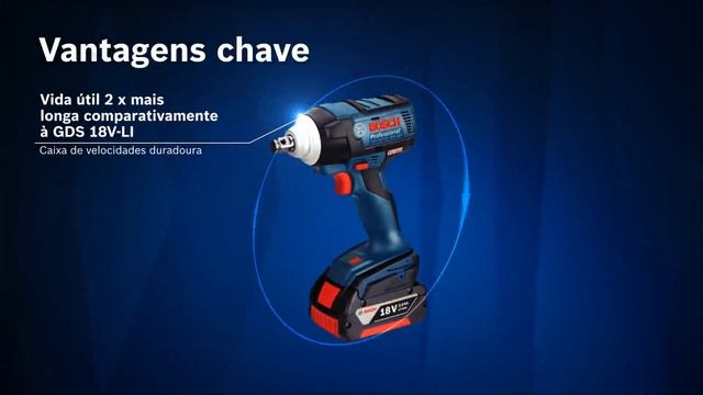 Aparafusadora de impacto sem escovas com binário de aperto potente de 300 Nm Elevado binário de aperto (até 300 Nm), compacto, leve, sem fio: potência e flexibilidade para excelentes resultados O motor sem escovas garante uma elevada potência, grande autonomia e uma longa vida útil da ferramenta O sistema Auto Bolt Release (ABR) desliga automaticamente a ferramenta no modo de inversão para evitar que a porca caia A aparafusadora de impacto sem escovas GDS 18V-300 Professional da Bosch proporciona um desempenho de alta potência. Esta ferramenta sem fio de 18 V oferece um potente binário de aperto até 300 Nm e tem um design compacto e leve, proporcionando um desempenho forte e flexibilidade com excelentes resultados. O motor sem escovas assegura uma potência elevada, maior autonomia e garante uma longa vida útil da ferramenta, tornando-a ideal para utilização prolongada. Para evitar que a porca caia, está equipada com o sistema Auto Bolt Release (ABR) que desliga automaticamente a ferramenta no modo de inversão. O porta-ferramentas de 1/2'' dispõe de um anel de fricção e de um furo do pino. O anel de fricção serve para trocar facilmente de ponta de chave de caixa, enquanto que o furo do pino pode ser utilizado para fixar a ponta de chave de caixa para que não caia inadvertidamente. É compatível com todas as baterias e carregadores de 18 V Bosch Professional (Professional 18V System). Dados técnicos Os dados mais importantes Nº de rotações em vazio 0-2.400 U/min Peso sem bateria 1,3 kg Binário máx. 300 Nm Número de impactos nominal 0-3.400 ipm Tensão da bateria 18 V Porta-ferramentas 1/2'' Quadrado Dimensões da ferramenta (largura) 64 mm Dimensões da ferramenta (comprimento) 163 mm Dimensões da ferramenta (altura) 246 mm Diâmetro do parafuso Ø do parafuso M 10 – M 18 Informações relativas ao ruído e às vibrações Valores totais de vibração (soma dos vectores das três direcções) Apertar parafusos e porcas de tamanho máximo admissível Valor de emissão de vibrações ah 18 m/s² Incerteza K 1,5 m/s²