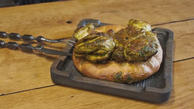 Курица с ароматными травами жареная в казане целиком.