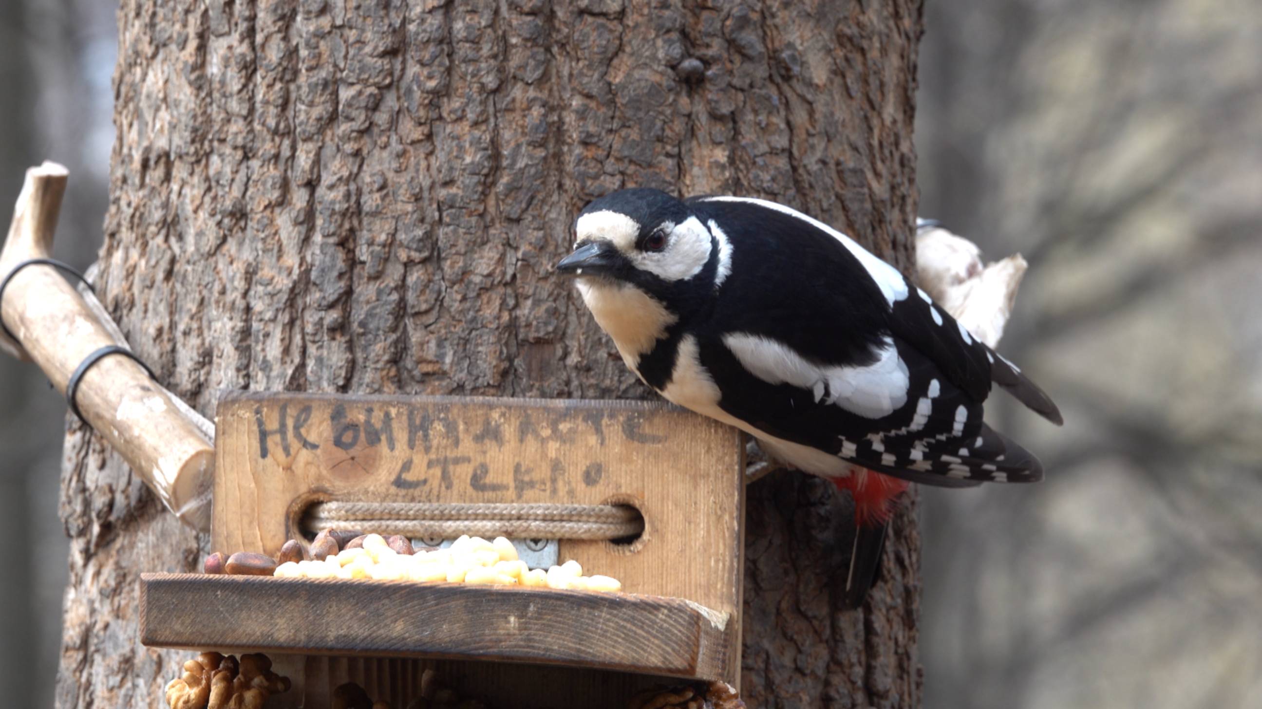 Починил кормушку. Первый бельчонок