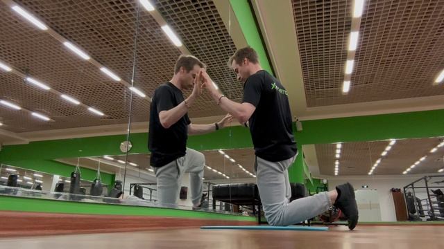 Динамическая растяжка приводящих мышц с опорой на одно колено